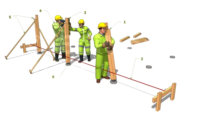 - 2 : aligner en affleurement le pilotis sur le cordeau, sans le toucher.