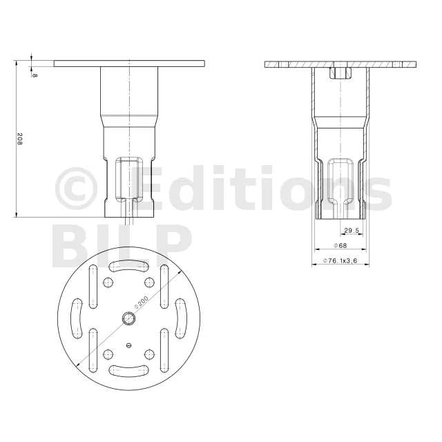 - Embout circulaire : L’embout circulaire peut être conçu pour s’adapter à une structure particulière, pour recevoir la base d’une vis ou pour faciliter la fixation d’autres composants.
