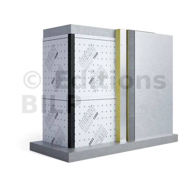 - Façades non ventilées (paroi béton + pare-vapeur + isolant thermique en laine minérale + revêtements de façade isolants).