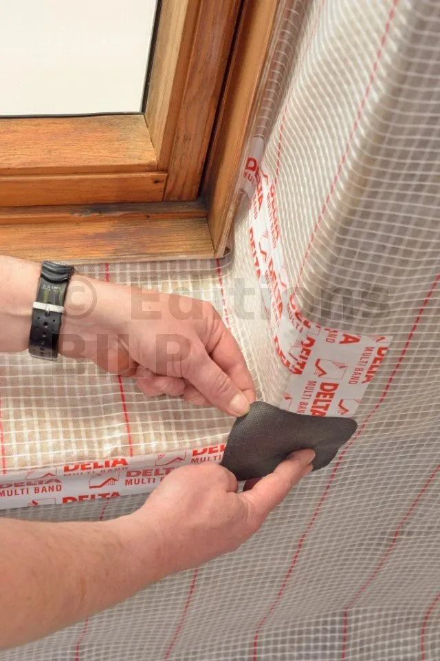 - Pare-pluie et pare-vapeur DELTA® aux points singuliers en bois lisse,