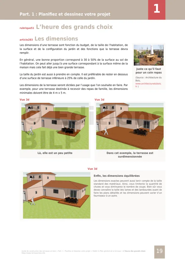Mais faites attention, il se dit beaucoup de bêtises et nombreux sont ceux à les répéter. Une terrasse en bois, cela n’est pas que des planches vissées sur des lambourdes. Notre guide fait plus de 200 pages, cela n’est pas pour rien. Et tout cela, vous allez bientôt le découvrir.