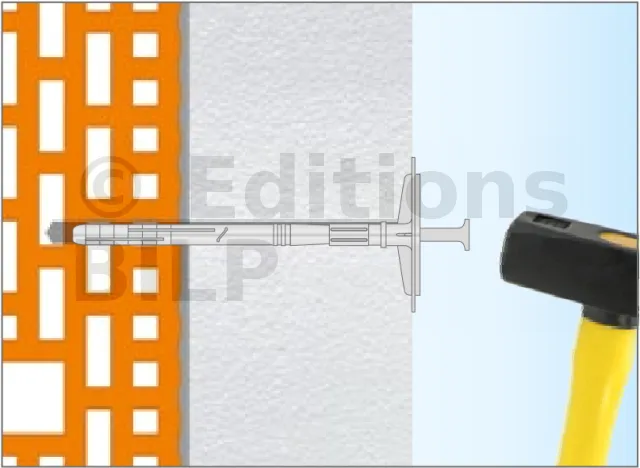 Cheville d’isolation à frapper avec clou en plastique, avec plaque de fixation coulissante - Réf. FIXPLUG08210(100)