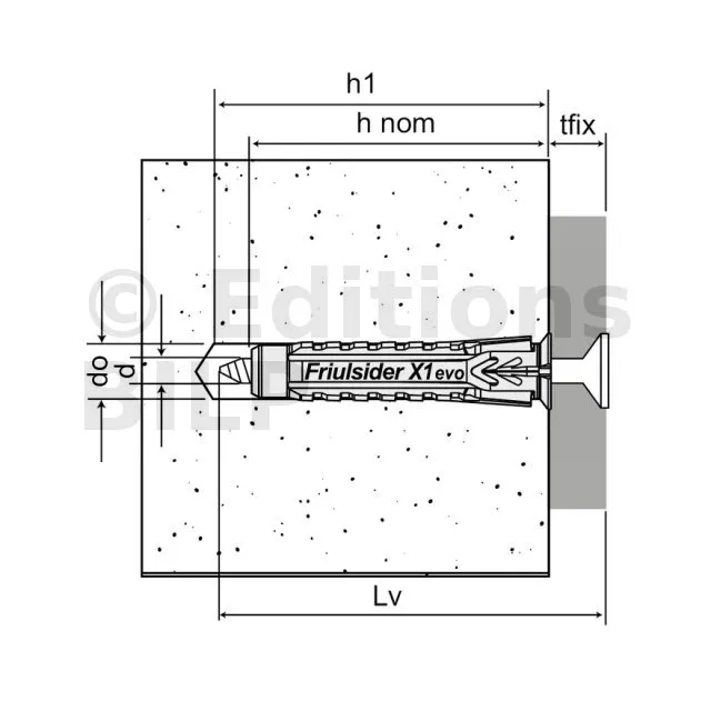 | Cheville | Ø6x30 | Ø8x40 | Ø10x50 | Ø12x60 | |||||||||||||||||||||