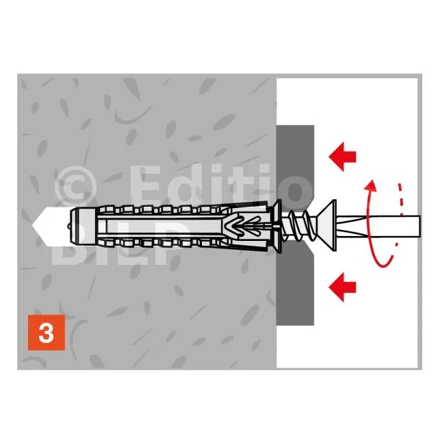 - Forme conique et ailes sous tête, permettant un excellent maintien de la cheville même si le perçage est irrégulier,