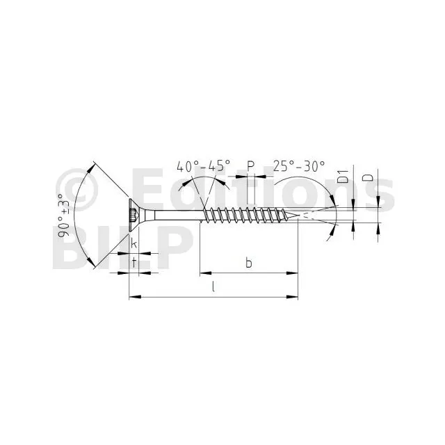 Vis à bois à tête fraisée - empreinte TX - INOX - filet partiel