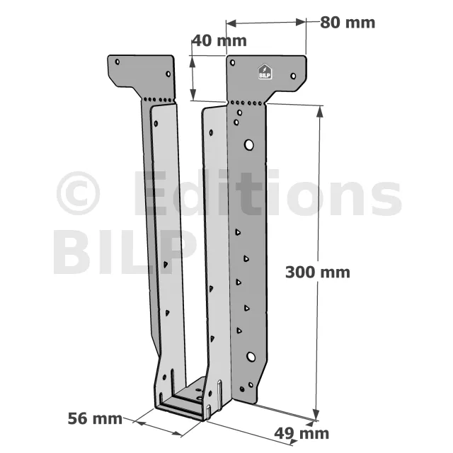 - Étrier fourni avec ses brides supérieures droites, pliables sur chantier afin de s’adapter à toutes les hauteurs de solives,