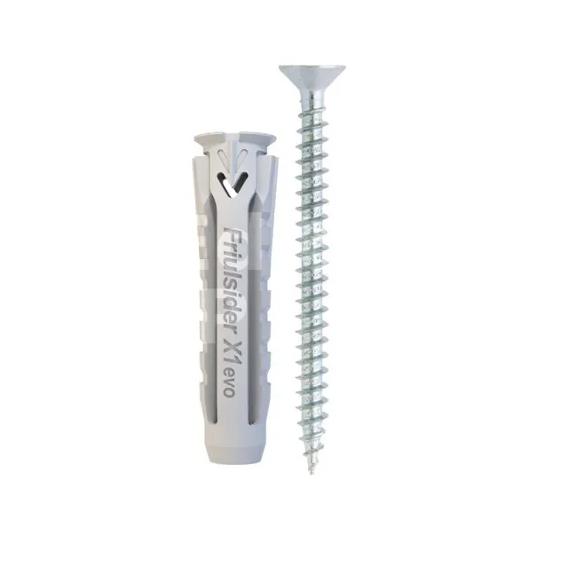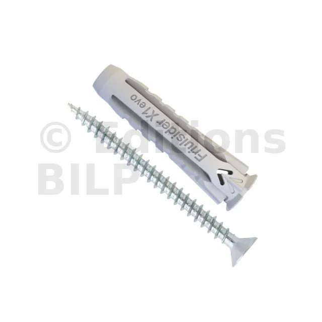 La cheville nylon universelle X1 evo, permet une fixation optimale d’éléments sur tous types de supports plein ou creux, notamment sur plaque de plâtre. Avec tous types de vis : vis filetage bois, vis filetage pas métrique. Avec un maintien large et stable grâce au 4 segments formant une rosace en arrière face du support lors de la pose.