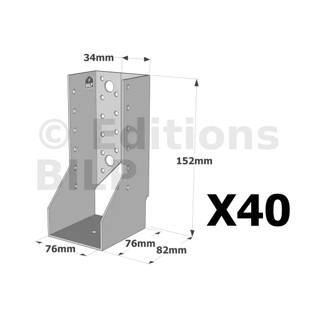 On admet une tolérance de 2 mm maximum entre l‘épaisseur du bois et la largeur du sabot. Exemple : un sabot plié à 76 mm peut porter une épaisseur de bois de 74 mm.