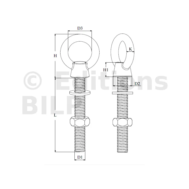 Piton à oeil fileté avec écrou - INOX