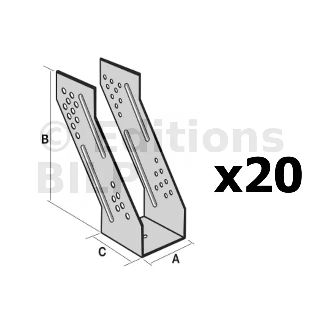 | Largeur [mm] | Hauteur [mm] | A | B | C | Ep. | Porteur | Porté | Base | Descendante | Ascendante | Lat. | |||||