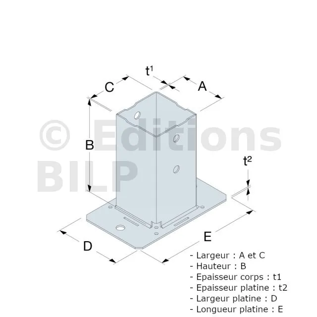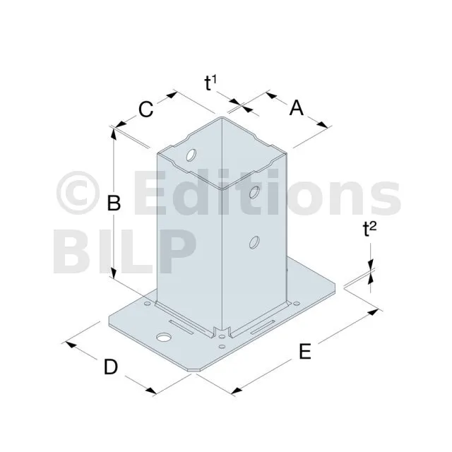 Le pied de poteau carré sur platine PPJBM est 100% fabriqué en France. Il est préconisé dans la réalisation de clôtures et structures légères de jardin, sur supports étroits pour des bois de 70 ou 90 mm. Grâce à sa platine rectangulaire et à des perçages centrés, le pied de poteau PPJBM est spécialement adapté à une utilisation sur muret ou bord de dalle.