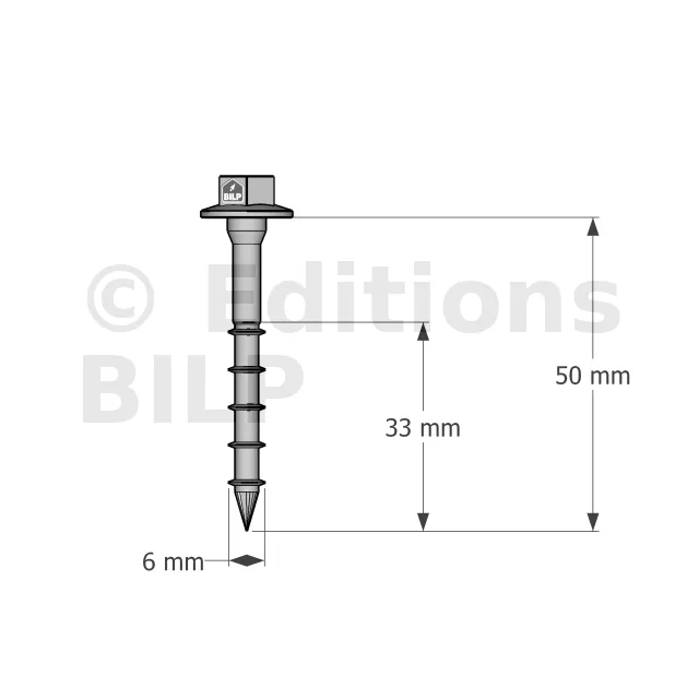 Vis connecteurs acier sur bois, SSH6.0X50 - Réf. 75129