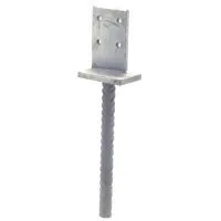 | Pied de poteau en âme à sceller - Réf. PIG | Reprise de charge en soulèvement ; hauteur réglable grâce à la tige à sceller ; galvanisation à chaud anti‑corrosion ; âme très discrète |