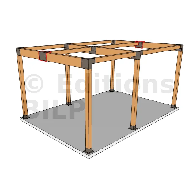 Il sert à raccorder une grosse poutre 240x120mm perpendiculairement à une poutre 120x120mm, le tout étant supporté par un poteau vertical 120x120 mm.
