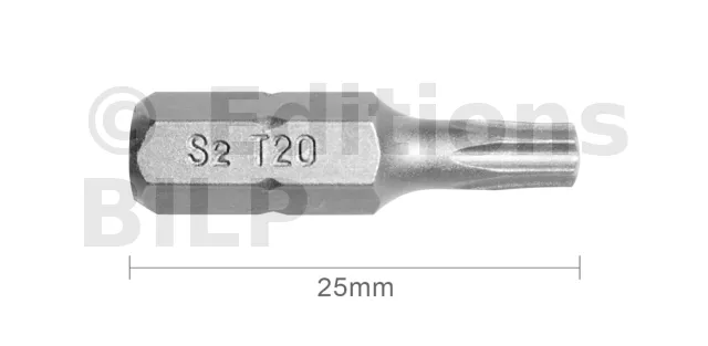 Embout T20 25mm (Qualité Professionnelle, Acier S2) - lot de 5 embouts - Réf. EmboutT20_5