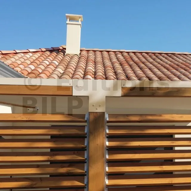Il permet également la connexion d’une longue poutre de 90x90mm à un poteau intermédiaire de 90x90mm.