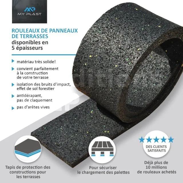 Protégez vos lambourdes et prolongez la durée de vie de votre terrasse grâce à ce rouleau en granulé de caoutchouc. Antidérapant, isolant et résistant aux intempéries, il offre une protection efficace contre l’humidité et facilite la pose de vos aménagements extérieurs.