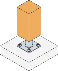 2. Fixer cette platine au poteau à l’aide de tirefonds LAG (pré-perçage nécessaire) ou vis SSH