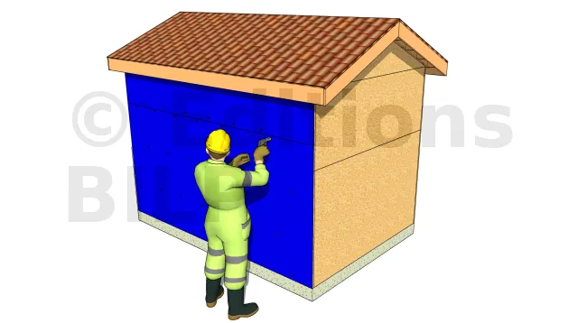 Tout d’abord, installez une feuille d’étanchéité pour limiter l’entrée d’air et d’humidité, ainsi que pour maintenir la chaleur. Bien couvrir toute la face. Au niveau des ouvertures, vous pouvez enrouler les excès autour des portes et fenêtres pour former un joint.