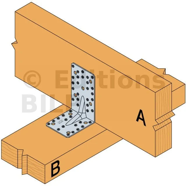 - Fixation BOIS/support rigide - clouage total2 équerres Aile A : 24 CNA Ø4.0x35 ou Ø4.0x50 mm ou Aile B : 4Ø10 (boulon ou tirefond)