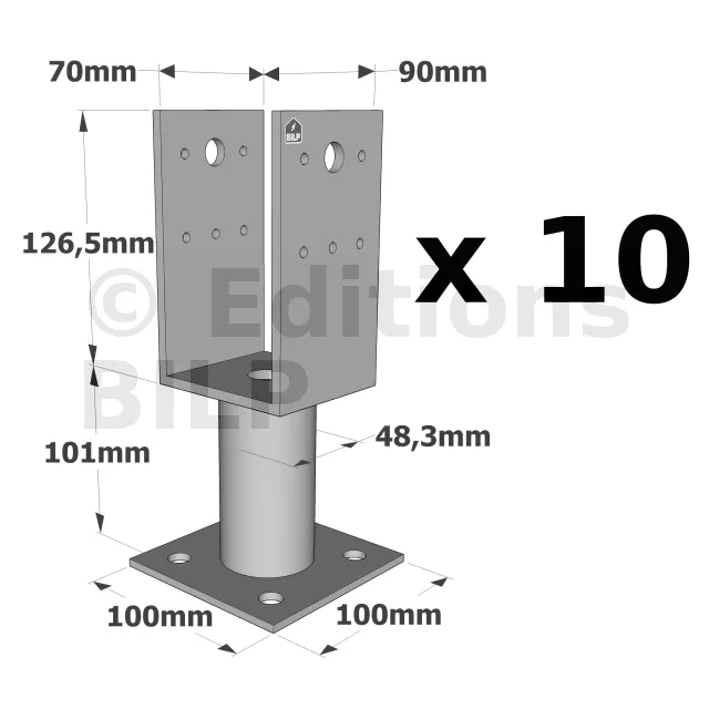 Pieds de poteau en U avec platine - Réf. PPUP90_10