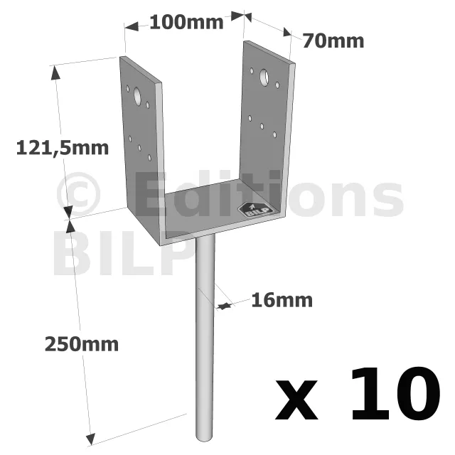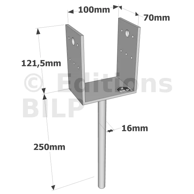 Pieds de poteau en U à sceller - Réf. PPD100/70G_10