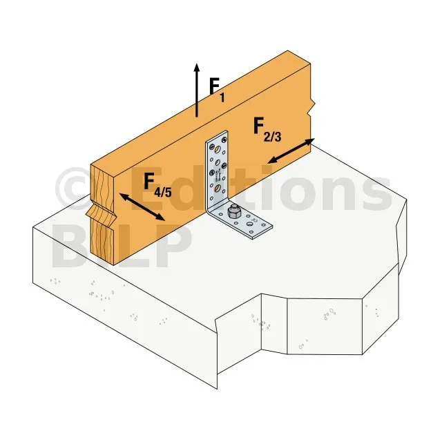 - Fixation bois/support rigide - type poutre/support rigideAile B : 7 - type : CNA Ø4.0x35 ou Ø4.0x50 mm ; Aile C : 1 - type : WA M10-78/5 - Assemblage avec 2 équerres