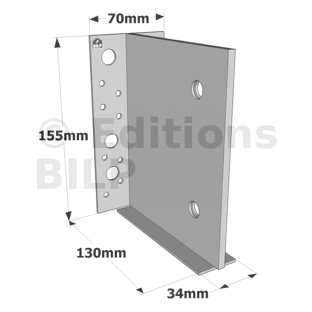 L‘étrier à âme intérieure permet un assemblage discret sur support bois. Le talon intérieur positionne l’étrier par rapport au bois facilitant le montage des broches.