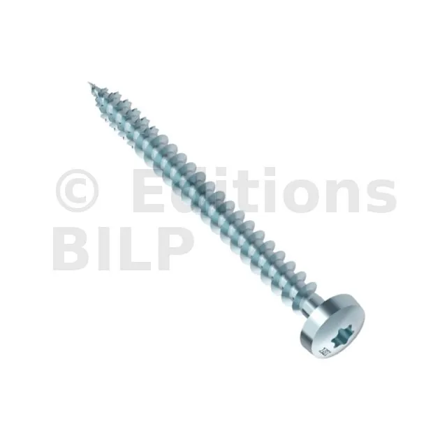 HECO-FIX-plus, tête ronde, T-Drive, filet total, zingué blanc, A2K, revêtement lubrifié, Dim. 6.0x40mm - Réf. 19367