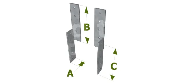 - Fixation bois/bois - type poutre/poutreAile A : 9 ; Aile B : 7 ; type : CNA Ø4.0x35 ou Ø4.0x50 mm - Assemblage avec 2 équerres
