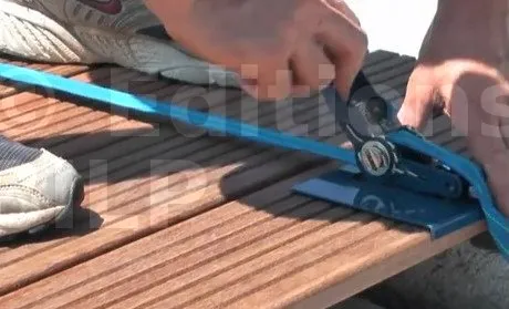 Facilite le montage des lames, permet de redresser des lames déformées. Bord coudé pour une tenue ferme, mécanisme à crémaillère de précision, bride indéformable de 5 m de long en polypropylène. Pression de serrage de 100 kg
