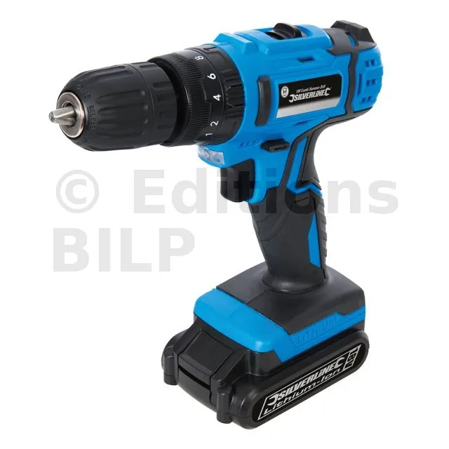 Perceuse à percussion alimentée par batterie Li-ion 1,3 Ah avec chargeur intelligent. Mandrin sans clé de 10 mm à double manchon. Réglages du couple 16+1 et inversion du sens de rotation. Poignée surmoulée en caoutchouc et indicateur LED du niveau de charge de la batterie intégré. Frein électrique. Guide de lumière très pratique. Vitesse à vide : 0 - 400 / 0 - 1 450 tr/min. Capacité de perçage max de 20 mm dans le bois, 10 mm dans la maçonnerie et de 8 mm dans l’acier. Couple max 30 Nm. Temps de charge entre 3 et 5 heures. Batterie, chargeur de batterie et boîtier d’alimentation électrique du chargeur inclus.