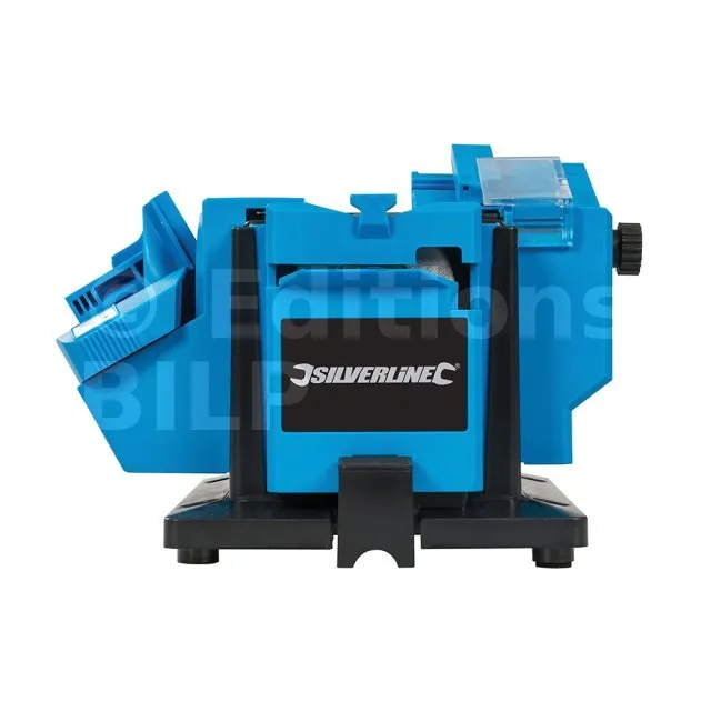 Appareil spécialement conçu pour réaliser l’affûtage de forets en acier HSS (acier rapide), burins, couteaux, ciseaux, fers de rabots, et autres lames. Comprend des gabarits afin d’obtenir un réglage de l’angle d’affûtage d’une grande précision. Garantit un affûtage rapide et soigné. Pour mèches en acier HSS (acier rapide) de 3 à 13 mm de diamètre et pour lames de 6 à 51 mm de largeur. Polyvalent et facile d’utilisation. Disques de meulage de rechange disponibles.
