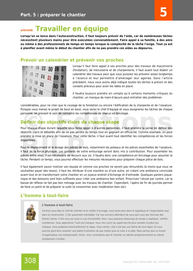 Partie 5 : préparer le chantier