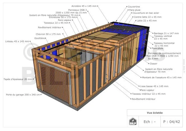 je peux vous l’envoyer GRATUITEMENT au format PDF. Il s’agit du dossier de conception d’un GARAGE en ossature-bois. Peut-être que cela vous inspirera pour votre projet.
