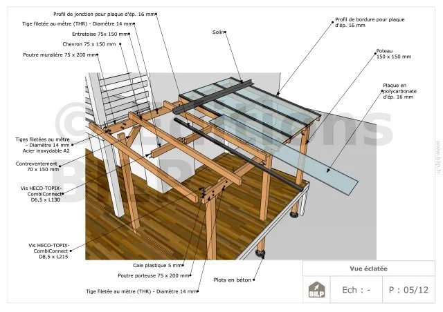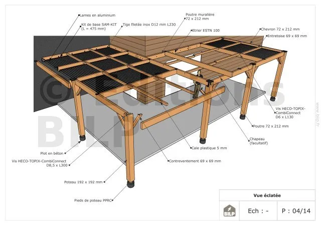 Vous aurez une vue éclatée qui vous permettra de distinguer tous les éléments constituants votre pergola.
