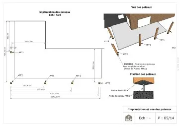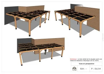 Les plans de structure à l’échelle sont faciles à lire et à comprendre. Ils vous permettrons de réaliser vous-même la structure de votre pergola. Les détails de réalisation sont indiqués. Nous calculons et optimisons les dimensions et les sections de pièces de bois.