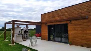je peux vous l’envoyer GRATUITEMENT au format PDF. Il s’agit du dossier de conception d’une PERGOLA bioclimatique en ossature-bois. Peut-être que cela vous inspirera pour votre projet.