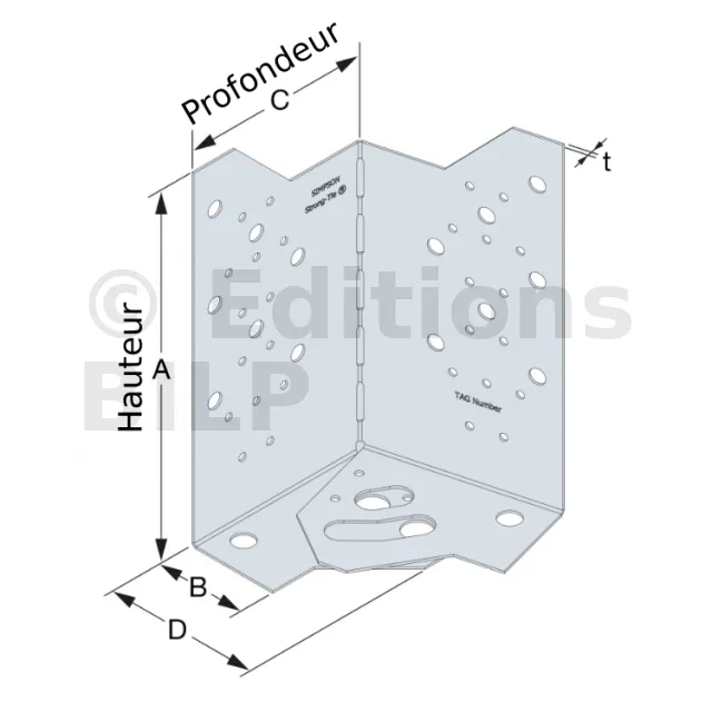 Équerre réglable pour dalle bois - Fixation poutre bois de hauteur 235 à 310mm - Réf. ABF230