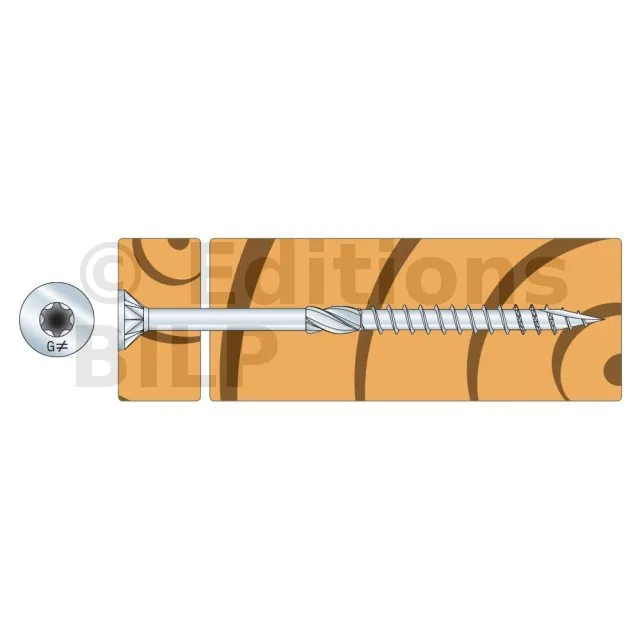 - Une vis dont l’axe est de 45 à 90° du fil du bois dans le cas des ESCR(XXX), et à 90° du fil du bois pour les autres vis.