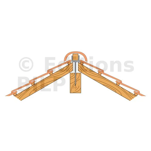 Le support de faîtage RB permet de remplacer les lisses de rehausses nécessaires à la ventilation de toiture. Il se cloue directement sur la poutre faîtière, ce qui facilite le réglage final.