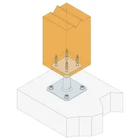 Fixez la platine inférieure sur le support à l’aide de goujons d’ancrage ou tirefonds adaptés au matériau (béton, dalle ou bois porteur).