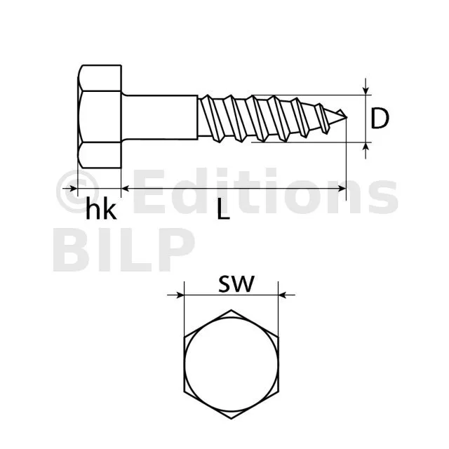 - Normes similaires : La norme ISO correspondante est ISO 885 pour les vis à bois avec tête hexagonale.