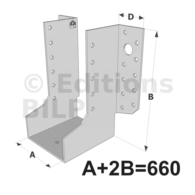 Grands sabots à ailes extérieures, gamme GLE ECONOMIQUE (développé 660mm, épaisseur 2.5mm, profondeur 90mm) - Réf. GLE660/2.5X