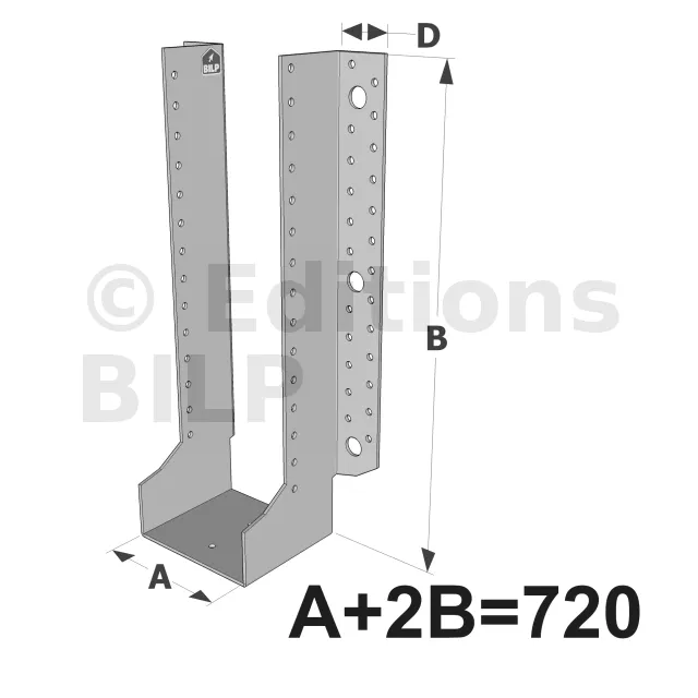 Grands sabots à ailes extérieures, gamme GLE ECONOMIQUE (développé 720mm, épaisseur 2.5mm, profondeur 90mm) - Réf. GLE720/2.5X