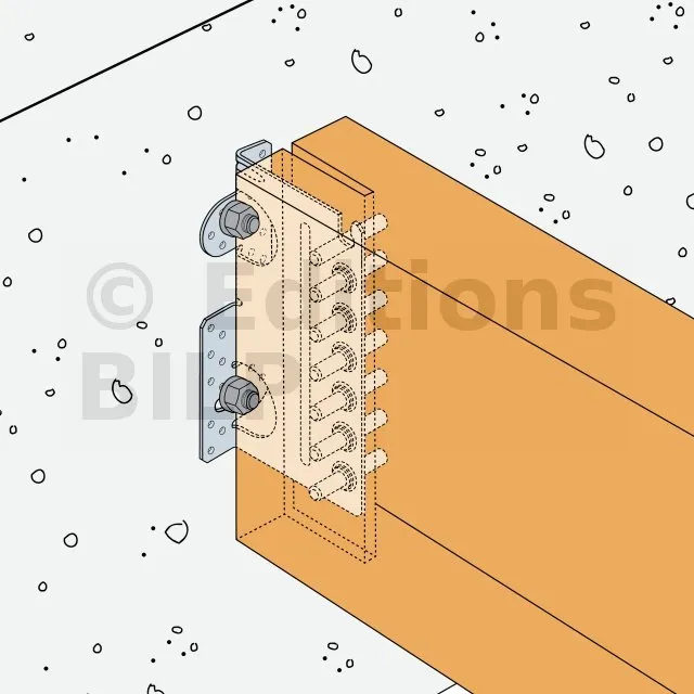** Les solutions générales d’ancrages sont BOAXII, SET-XP, WA, AT-HP, à choisir en fonction du type de béton, des distances aux bords et entre ancrages.