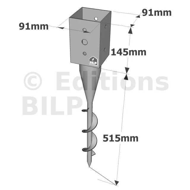 Pied de poteau carré de jardin à visser - Réf. PPJST90/660