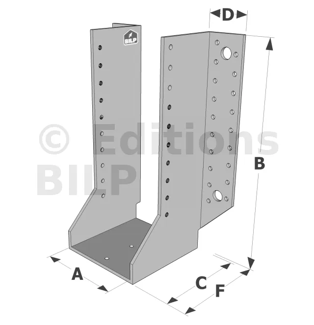Les sabots GSE en acier galvanisé offrent une flexibilité grâce à des largeurs au choix selon les plages indiquées. Cette caractéristique permet de s’adapter parfaitement aux dimensions spécifiques des éléments de construction, garantissant une compatibilité optimale et une fixation stable.