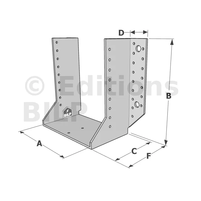 Les sabots GSE en acier galvanisé offrent une flexibilité grâce à des largeurs au choix selon les plages indiquées. Cette caractéristique permet de s’adapter parfaitement aux dimensions spécifiques des éléments de construction, garantissant une compatibilité optimale et une fixation stable.