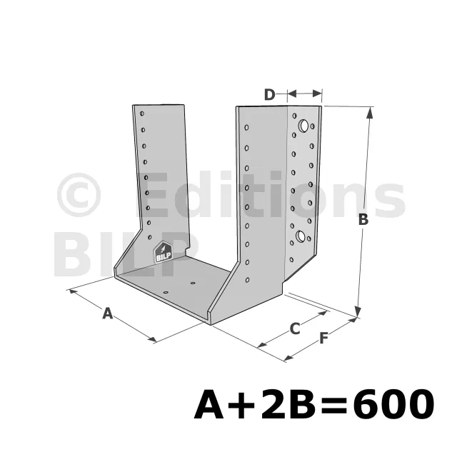 Grands sabots à ailes extérieures, gamme GSE CLASSIQUE (épaisseur 4mm, profondeur 110mm) - Réf. GSE600/4X-AL
